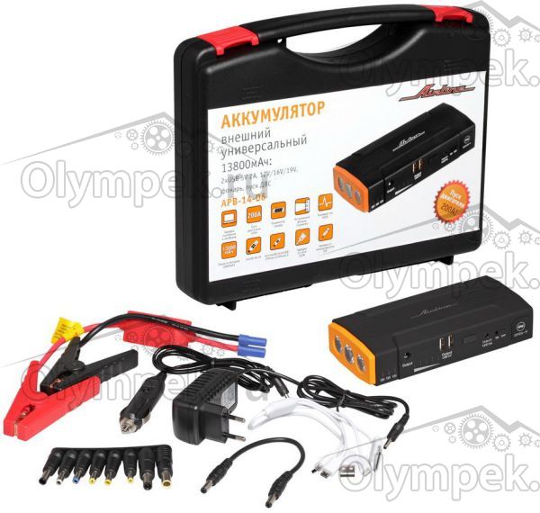 Аккумулятор внешний универсальный (Booster) 13800мАч: 2хUSB 5V 2A, 12V/16V/19V, фонарь, пуск ДВС (APB-14-06)