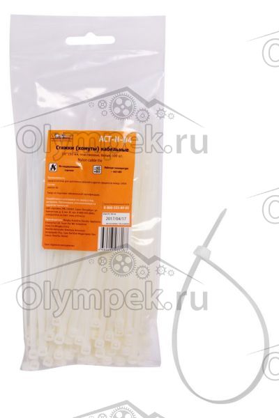 | Наименование | Стяжки (хомуты) кабельные 3,6*150 мм, пластиковые, белые, 100 шт. (ACT-N-04) |