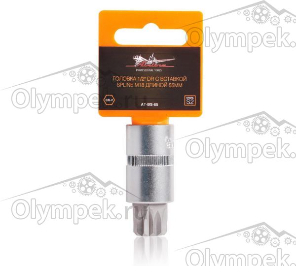 | Наименование | Головка 1/2" DR с вставкой SPLINE M18 длиной 55мм (AT-BS-65) |
