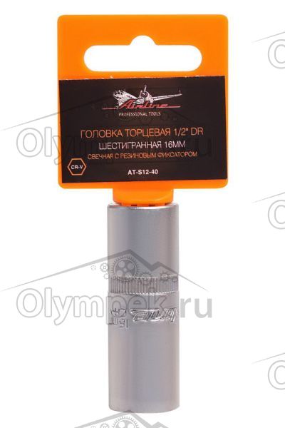 | Наименование | Головка торцевая 1/2" DR шестигранная 16мм свечная с резиновым фиксатором (AT-S12-40) |