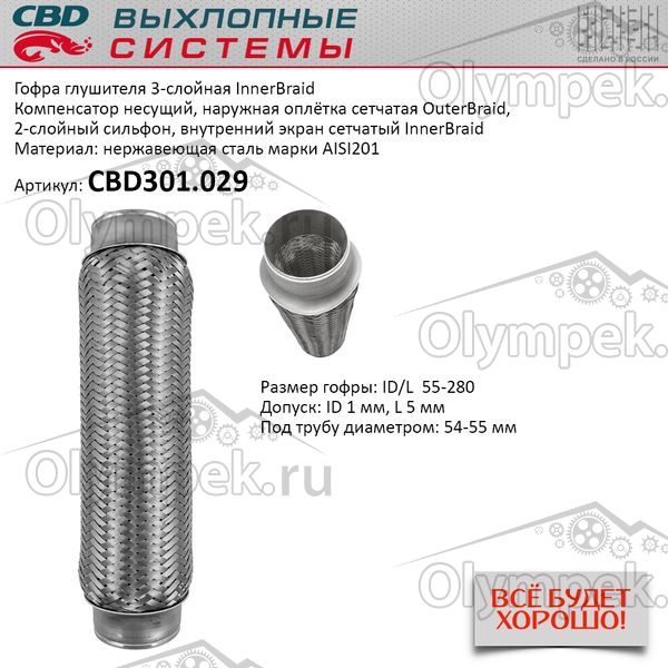 | Наименование | Гофра глушителя 3-сл Innerbraid 55-280. CBD301.029 |