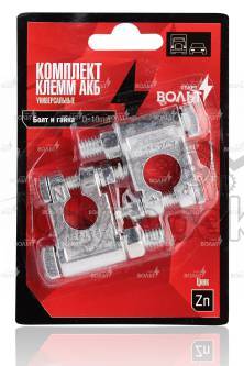 | Наименование | Клеммы АКБ в комплекте цинк, болт и гайка 10мм |